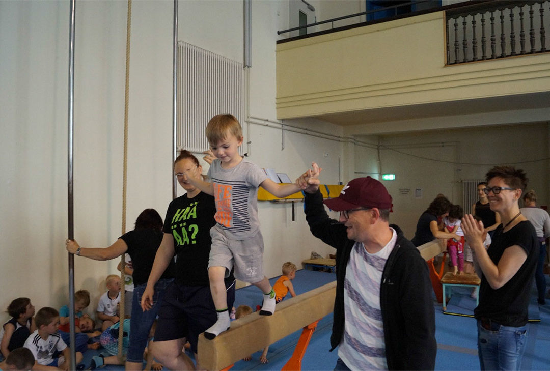Mit großer Begeisterung stürmten 82 Kinder im Alter von 3 bis 6 Jahre die Turnhalle in der Lauchstädter Straße. Unter Leitung von Frau Heike Krosse und ihrem Team wurden die Stationen erklärt und betreut. Die Kinder balancierten, hangelten, hüpften und überwunden mit viel Freude die Hindernisse.
