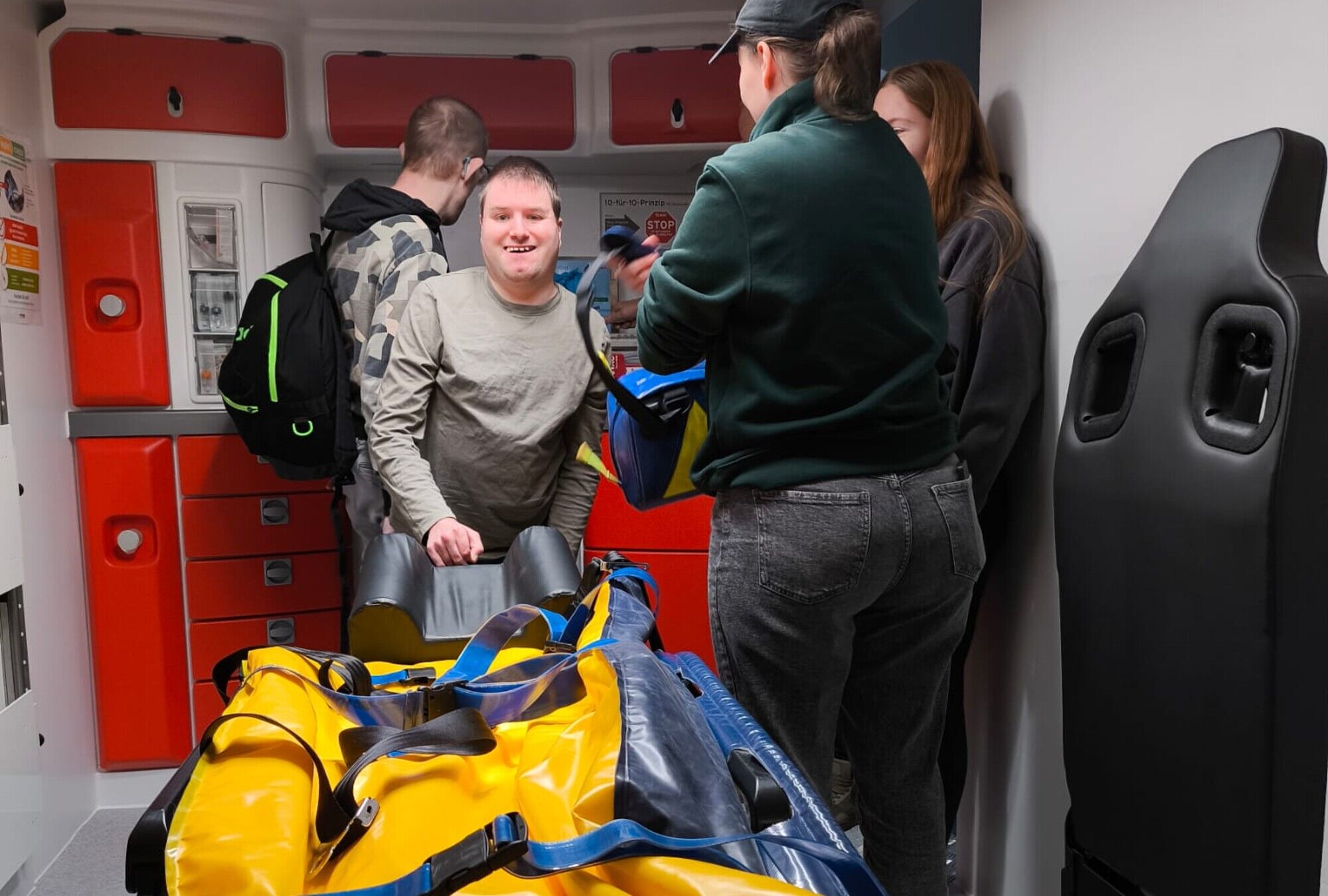 Dort konnten verschiedene Szenarien durchgespielt werden. So durften unsere Betreuten zum Beispiel verschiedene Verletzungen in der Zentralen Notaufnahme versorgen, intubieren, das Betreute Wohnen kennenlernen, Verbände anlegen, sowie einen Rettungswagen besichtigen.